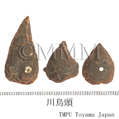 | Clinical application | As an antispasmodic and painkiller, Wutou is applied for arthritis, numbness of limbs and abdominal pain of sickly person. It is also used as diuretic and tonic. | ||||||