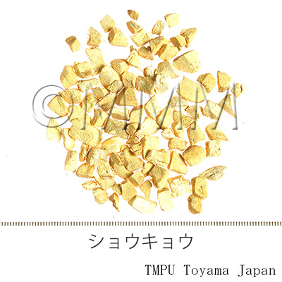 RemarksSince ancient times, Shengjiang, in Chinese traditional formulae, has been representing fresh ginger, and Ganjiang means dried ginger. That is, dried Shengjiang (or Ganshengjiang) in Chinese drug market indicates Ganjiang in Chinese traditional formulae (Kampo formulae). However, Ganjiang in the recent market means dried, after steamed, Shengjiang. It can be called processed one. In China, in contrast, fresh ginger is Shengjiang and dried is Ganjiang. In addition, there is Paojiang which is a processed drug. Paojiang is made as follows.: First of all, the clean sand (Gefen, Huashifen) should be put into a pan and heated at strong fire. The dried unpeeled Shengjiang is added and mixed until the surface swells and the color turns to brown. Then it is picked out and cooled in air. Shengjiang has greater effects in strengthening the function of the stomach and relieving vomiting than that of Ganjiang. In case Ganshengjiang is applied as a substitute for Shengjiang, the dose should be one third to one fifth of the traditionally indicated amount.