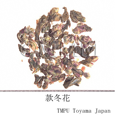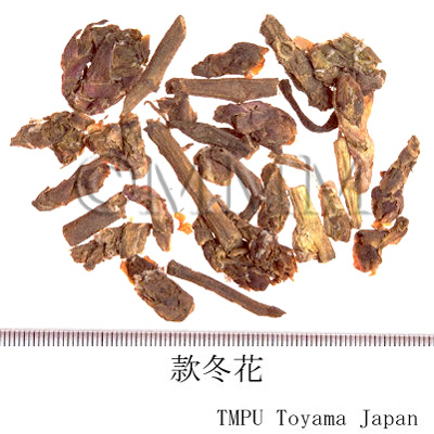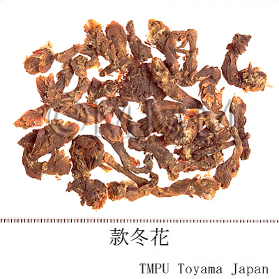 | Remarks | The leaves of Tussilago farfara L. ( Jap. name: Fukitampopo), which directly grow from the root are called Kuandongye, and the root of it is called Kuandonggen. They are used as antitussive and expectorant, as well as Kuandonghua. Fukitampopo is well distributed in the continent of Eurasia. The leaves are called Farfarae Folium in Europe and are applied to relieve coughs such as bronchial catarrh. Long ago, Dioscorides said "If you put the beaten leaves on rubors on the skin, erysipelas and all the other inflammatory regions, they will be cured. It will cure the people who are orthopneic because of dry cough or other transient reasons, if they fumigate dried leaves and inhale the smoke through a pipe. The smoke also induces expectoration of abscess in the lung. The fumigated smoke of the roots has the same benefits. If a pregnant woman drinks the brewed roots with honey water, she will abort a dead fetus." Since then, these benefits have been handed down. Wakantōka, Japanese Kuandonghua, is the flos of Petasites japonicus (Sieb. et. Zucc.) Maxim., butterbur of family Compositae. Generally, it is sold as Fukinotō and is also used to alleviate cough and remove phlegm. | |||||