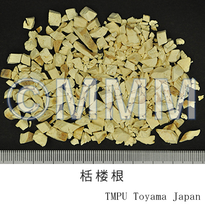 | Clinical application | As an antifebrile, antitussive, diuretic, relactagogue, relieving thirst and for draining pus, it is applied to cure thirst of deficiency syndrome, pain due to pharyngeal swelling, respiratory disease, malignant tumor and all. The powder of "gualougen" ("tenkafun" in JP) is used externaly to infantile skin diseases. | ||||