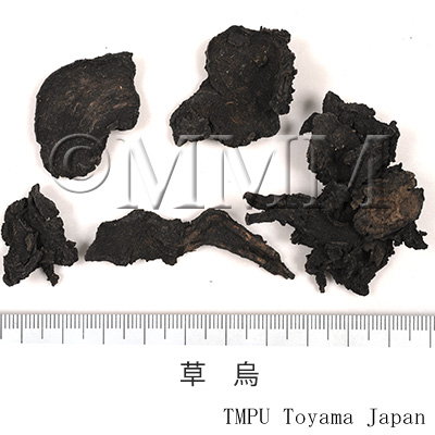 | Remarks | - The tubers of wild Aconitum have respective names depending on the production area and species, as follows: Sōuzu (Jap. name), Caowu, Wuyao, Jinniuqi, Dacaowu, Xiaoheiniu, Xuewu, Huangcaowu, Tengcaowu, Wanwuyao, Kaenshi (Jap. name), Tiebangchui. - Various kinds of Chinese Souzu: A. kusnezoffii (Heilongjiang), A. artemisaefolium Bar. et Skv. (Liaonig), A. paniculigerum Nakai, A. sczukini Turcz. (Northeast part), A. taipeicum Hand.-Mazz. (Shaanxi), A. karakolicum Rap., A. soongaricum Stapf (Xinjiang), A. sungpanense Hand.-Mazz. (Shaanxi, Gansu, Sichuan), A. hemsleyanum Pritz. (Sichuan, Hubei, Hunan, Shaanxi), A. stylosum Stapf, A. transsectum Diels, A. delavayi Franch. (Yunnan) and many other tubers of genus Aconitum. - Korean Sōuzu: Tubers of several Aconitum genus such as A. triphyllum Nakai (Jap. name: Mitsubatorikabuto). - Japanese Sōuzu: The tuber of A. japonicum Thunb. - The Pharmacopoeia of The People's Republic of China contains Chuanwu, the parent root of A. carmichaeli (harvested from late June to early August), and Caowu, the tuber of A. kusnezoffii (harvested in Autumn). Caowu is stronger in both toxicity and benefit than Chuanwu. Compared with Fuzi, Wutou has advantages of expelling wind and relieving pain, and has disadvantages of stimulating heart and dispelling cold. | ||||||