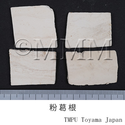| Remarks | In China, not only Pueraria thomsonii Benth. but P. pseudo-hirsuta Tang et Wang may be found in the market. Taiwanese one is the root of P. montana (Lour.) Merrill. (JP. name: Taiwankuzu). The Japanese "kuzudenpun", which is obtained from its root, is the important ingredient for making "kuzuyu" (soup of starch kudzu). | |||||