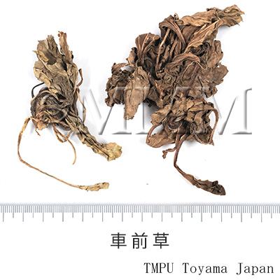 RemarksChaqiancao (車前草) is derived from the original plant P. depressa Willd. (Jap. Name: Mujinaōbako) and is occasionally found in markets, along with Cheqianzi (車前子). In addition, Commercial samples imported from China may also contain the whole plant of P. hostifolia Nakai et Kitag. (Jap. Name: Enagaōbako).