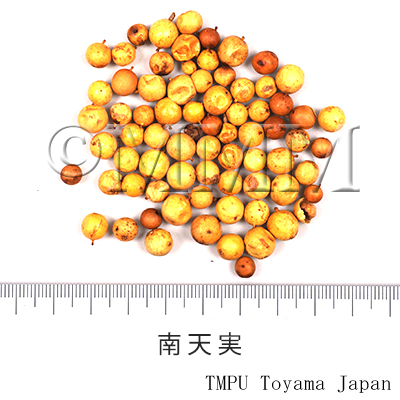 | Remarks | The origin of using the fruit of Shironanten (Nandina domestica var. lleucocarpa) or Nanten (Nandina domestica) as an antitussive in Japan is not clear. However, it seems that the knowledge was not brought from China. There are Shironanten and Akananten in the market. Since Shironanten which bears white fruit is more appreciated in the market, bleached red fruits of Nanten are mass-marketed. They have no luster nor lamina, and the pericarp is thinner. | |||||
