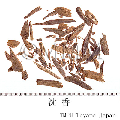 | Remarks | - The original plant of Chenxiang includes Aquilaria agallocha Roxb. (products of India, Malaysia, Vietnam and Cambodia), A. malaccensis Lam. (Malaysia), A. baillonii Pierre (Cambodia), A. crassna Pierre (Cambodia and Vietnam) and A. sinensis (Lour.) Gilg (China). Japan imports a large amount from Singapore and Vietnam. They are identified by the composition of sesquiterpenoids as follows.: Singapore I-type (SI-type) contains much jinkohol and jinkohol II. SingaporeII-type (SII-type) does not contain them. Vietnam type (V-type) does not contain jinkohol nor jinkohol II but much dihydrokaranone and oxo-agarospirol (C2, C5). Chinese Chenxiang resembles V-type, which has a high content of oxo-agarospirol (C3). The allied species Kanankō (伽南香, Jap. name), which is also called Kyara (伽羅), has been said to be superior to Chenxiang. It contains chromones which are not found in Chenxiang. In addition, it has higher contents of benzene extract (C5) and acetone extract (C7). - A. sinensis produced in China is listed in the Chinese Pharmacopoeia (2020) and is called Dojinkō, Kainanjinkō and etc. It is mostly imported into Japan for use as incense. - The medicines stored in the Shosoin Repository include Jinkō and Zōjin, Zensenkō (Kōjin), and Ōjukukō (Ranjatai). They have no sesquiterpenoids nor 1-8diethylchromone nor phenyethylchromone. Therefore, it is attested that their origins are closely related to Chenxiang produced in northern Indochina such as Vietnam (C8). Thus, in the middle of the 8th century, items similar to those on the market today were introduced to Japan. | ||||||