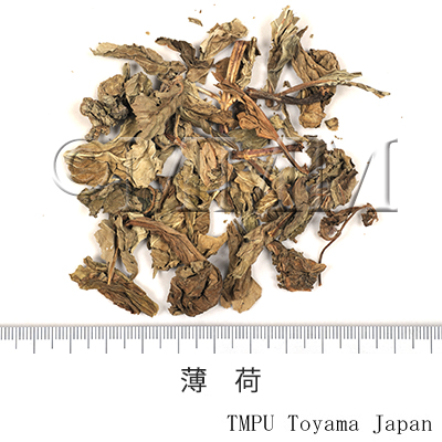 Remarks- Mentha piperita L. (Jap. name: Seiyōhakka) is a natural hybrid between Mentha spicata L. (Jap. name: Midorihakka) and Mentha aquatica L. (Watermint). It is cultivated for gardening and commercial use all over the world. It is a major European crude drug and called Menthae Piperitae Folium (Jap. name: Seiyohakkayō) or Peppermint. Being antispasmodic, carminative and cholagogue, it is used to treat gastrointestinal colic pain, flatulence and chronic gallbladder disease. The essential oil (peppermint oil: 0.5-4%) contains less menthol than that of Chinese Mentha Herb, "Bohe" (Jap. name: Hakka), but has a stronger odor and taste. Peppermint leaf contains menthofuran, however, "Bohe" contains only traces of it. These two can be distinguished by this component.