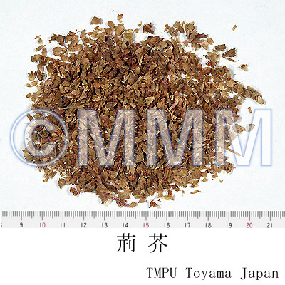 | Clinical application | As a diaphoretic, antifebrile, carminative, antispasmodic and hemostatic, Jingjie is applied for early stage of cold, headache, sore throat, wound, skin disease, disorder of after childbirth, hematemesis, epistaxis, hematochezia and metrorrhagia and metrostaxis. | |||||