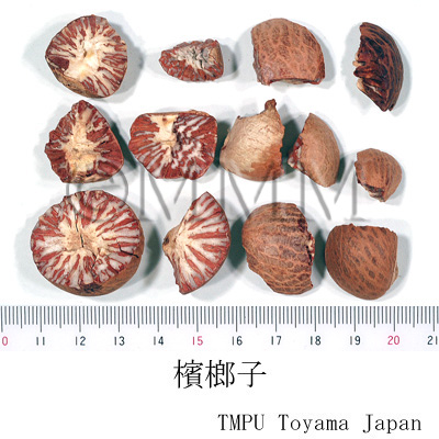 | Remarks | In the countries of Southeast Asia, there is a custom of chewing Binglang with a leaf of Piper betle L. (Jap. name: Kimma) and lime, known as betel chewing. The pericarp is called Daifukuhi and it is used as a medicine. | |||||