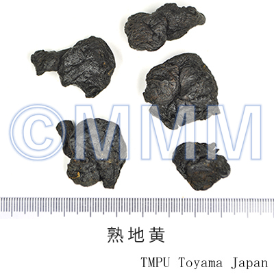 | Remarks | "Shudihuang" is processed with wine: it is made by steaming after mixing with "Huangjiu", a kind of rice wine such as "Shaoxingjiu". Then it is dried by daylight. This process, steaming and drying, is repeated 9 times. Steamed "Shudihuang": it is made by steaming without "Huangjiu". The steaming and drying process is repeated 9 times too. Comparing with "Kanjiō" (Unprepared Rehmannia Root), "Shudihuang" tends to have less or no iridoid glycoside such as catalpol, and has more monosaccharides. | ||||||