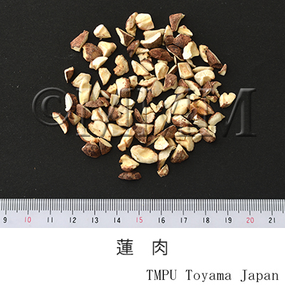 | Remarks | Nelumbinis Fructus (Jap. name: Sekirenshi) is the mature fruit of Nelumbo nucifera Gaertner (Jap. name: Hasu). It is applied to treat the complete loss of appetite due to diarrhea, vomiting, etc. Generally, the seed is used after removing the hard pericarp and the core. It is called Lianrou (Jap. name: Ren'niku). | |||||