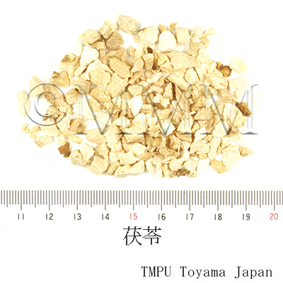 | Chemical constituent | Fatty acids related compounds (*C1): Lecithin Polysaccharides (*C1): Pachyman [beta-(1→3)-glucanの多糖体] Triterpenoids (*C1): Eburicoic acid, Dehydroeburicoic acid, Pachymic acid, Tumulosic acid, 3-beta-Hydroxylanosta-7,9,(11),24-trien-21-oic acid (*C2, C3): 3-O-Acetyl-16-alpha-hydroxytrametenolic acid, 3-Epidehydropachymic acid, 3-Epidehydrotumulosic acid, Poricoic acid BM, Poricoic acid E, Poricoic acid F Sterols (*C1): Ergosterol Amino acids (*C1): Histidine Other nitrogen containing compounds (*C1): Adenine Simple nitrogen containing compounds (*C1): Choline | |||||