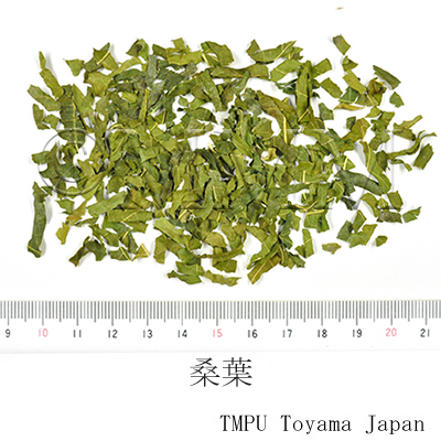 | Remarks | The Japanese Sangye (桑葉) is the dried leaf, with or without sprig, of Mori bombycis (Jap. name: Yamaguwa) and Mori alba L. var. multicaulis Loudon (Jap. name: Rōso). It is taken as medicinal tea to prevent palsy and arteriosclerosis. | |||||