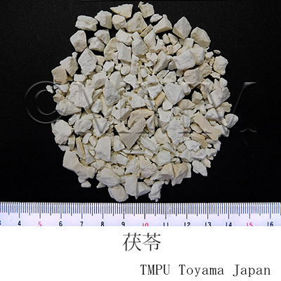 | Chemical constituent | Fatty acids related compounds (*C1): Lecithin Polysaccharides (*C1): Pachyman [beta-(1→3)-glucanの多糖体] Triterpenoids (*C1): Eburicoic acid, Dehydroeburicoic acid, Pachymic acid, Tumulosic acid, 3-beta-Hydroxylanosta-7,9,(11),24-trien-21-oic acid (*C2, C3): 3-O-Acetyl-16-alpha-hydroxytrametenolic acid, 3-Epidehydropachymic acid, 3-Epidehydrotumulosic acid, Poricoic acid BM, Poricoic acid E, Poricoic acid F Sterols (*C1): Ergosterol Amino acids (*C1): Histidine Other nitrogen containing compounds (*C1): Adenine Simple nitrogen containing compounds (*C1): Choline | |||||