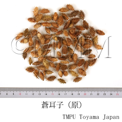 | Remarks | The Pharmacopoeia of the People's Republic of China defines Xanthium sibiricum Patr. ( X. sibiricum Patrin ex Widder, by rights) as Cang'erzi (蒼耳子). The Flora of Japan, by Jisaburo Ohwi, treats it as a synonym of X. strumarium L. (Jap. name: Onamomi). Fruits of X. canadense Mill. (= X. occidentale Bertol.), Jap. name: Ōnamomi, are included in Japanese Cang'erzis. They are a naturalized plant from North America and distributed widely in western Japan recently. Though they substitute the existing Cang'erzi (Jap. name: Sōjishi), the quality is inferior. | |||||