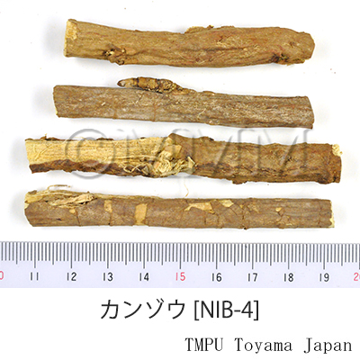 | Remarks | - "Xinjiang Gancao", the root or stolon of Glycyrrhiza inflata Batal, is used for extracting and isolating glycyrrhizin. - Raw or honey dipped fragments of "Gancao" are roasted, which are called "Zhigancao". "Gancao" clears away heat and toxins well, whereas "Zhigancao" is strong in invigorating the spleen and replenishing qi (vital energy). - "Gancao" is the most frequently used crude drug in Kampo formulations. "Gancao" extract is in high demand as a condiment for cigarette, soy sauce and other foods. - Because of the action of its mineralcorticoids, long-term and massive use (over 50g/day) may lead to hypokalemia, hypernatremia, edema, high blood pressure and heart disorders. In extreme cases, it causes pseudoaldosteronism. | ||||||