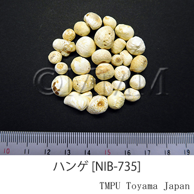 Remarks"Banxia (半夏)" is sometimes used after being processed. Processed "Banxia" consists of "Fabanxia (法半夏)" and "Jiangbanxia (姜半夏)". "Fabanxia (法半夏)" is processed with "Gancao (glycyrrhiza/liquorice)" and burnt lime. It is often used for eliminating dampness and resolving phlegm. "Jiangbanxia (姜半夏)" is processed with "Shengjiang (fresh ginger)" and alum. It is often used for lowering the adverse flow of qi to stop vomiting. In rare cases, the tuber of Pinellia pedatisecta Schott, P. tripartita Schott (Jap. name: Ōhange) or Arisaema spp. are blended into Chinese Banxia in the market. "Shuy-banxia (水半夏)" is the tuber of Typhonium sp.