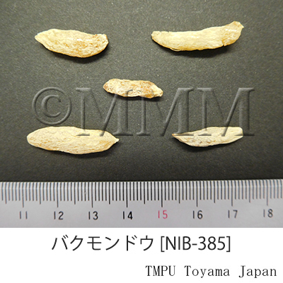 RemarksBoth The Japanese Pharmacopoeia and The Pharmacopoeia of People's Republic of China define O. japonicus as the original plant. Besids, in China, O. ohwii (Jap. Name: Sekkojanohige) and O. chekiangensis Kimura et Migo are circulated. The latter is cultivated in Zhejiang Province. Some say that it must be disinguished from O. japonicus because it has slender rhizome. Korean "Maimendong" is the enlarged roots of Liriope spicata Lour. (Jap. Name: Koyaburan) or L. platyphylla Wang et Tang., which is called "Tumaimen" in China. Its quality is not good.