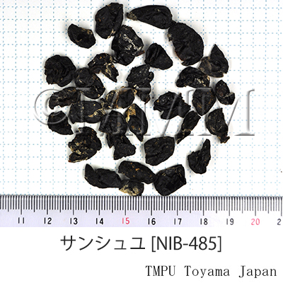 RemarksFruits of Berberis sp. (Berberidaceae) produced in Shandong Prov., or fruits of Elaeagnus umbellata Thunb. of family Elaeagnaceae (Jap. name: Akigumi or Japanese Shanzhuyu), are sometimes available in the market as fakes. Since the medicinal benefits are completely different from the real one, they should be used carefully.