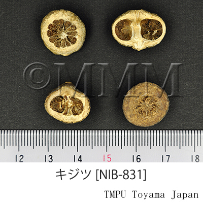 | Original plant name | Citrus aurantium L., C. sinensis Osbeck, C. unshiu Marc., C. reticulata Blanco, Poncirus trifoliata Raf., (Santō, Amadaidai, Unshumikan, Ponkan and Kukitsu) | |||||