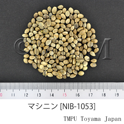 | Remarks | Maziren is also called "Chojitsu" ("Onomi"), "Kamanin" and "Taimanin" in Japan. It is used as food, an ingredient of the Japanese mixed spice "Shichimitōgarashi", birdseed and a raw material for essential oil. Cannabis sativa L. var. indica Lamark (JP Indoasa) is an elemental variant cultivated in India, Bangladesh and other regions. Though it resembles Maziren closely in appearance, it has an anesthetic component "cannabinoids" in its leaf and, especially, in cilia. Therefore, it is regulated as a narcotic drug. | |||||
