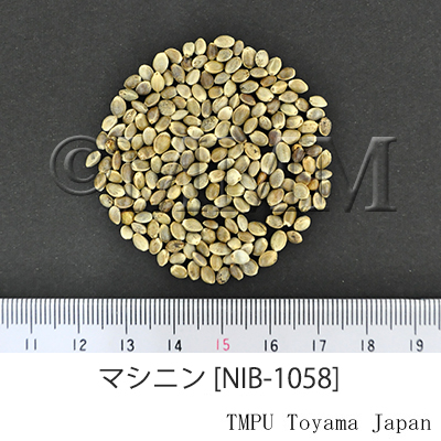 | Remarks | Maziren is also called "Chojitsu" ("Onomi"), "Kamanin" and "Taimanin" in Japan. It is used as food, an ingredient of the Japanese mixed spice "Shichimitōgarashi", birdseed and a raw material for essential oil. Cannabis sativa L. var. indica Lamark (JP Indoasa) is an elemental variant cultivated in India, Bangladesh and other regions. Though it resembles Maziren closely in appearance, it has an anesthetic component "cannabinoids" in its leaf and, especially, in cilia. Therefore, it is regulated as a narcotic drug. | |||||