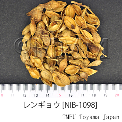 RemarksThe fruit of Forsythia suspensa or F. viridissima was defined in the Japanese Pharmacopoeia 16th edi. Only the former has been defiend since its 17th edi. The Chinese Pharmacopoeia also defines F. suspensa only.