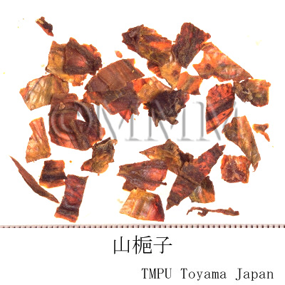| Chemical constituent | Monoterpenoids Iridoids: (*C1): Gardenoside, Geniposide, Genipin, Genipin 1-beta-gentiobioside, Shanzhiside, Methyl decacetylasperuloside, Geniposidic acid, 10-Acetylgeniposide, Gardoside, Scandoside methyl ester (*C2): Geniposide, Gardenoside, 以下代謝物 [The following compounds are the metabolites] Genipinine, Genipinine monoacetate, Gardenogenin A, Gardenogenin B, Gardenine Carotenoids (*C1): Crocin (Crocetin + Gentiobiose) Other aromatic derivatives (*C1): p-オキシケイヒ酸誘導体 | |||||