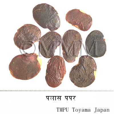| Crude drug name | Ayurvedic name or Sanskrit name, English name | Palasa (Seeds/fruit pieces), Flame of the Forest, Bengal Kino | |||