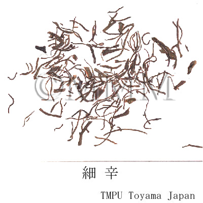 | Remarks | - Both Chinese Xixin (Asiasarum heterotropoides var. mandshuricum, Jap. name: Keirinsaishin and others) and the Xixin of Korean peninsula (A. heterotropoides var. seoulense F. Maekawa, Jap. name: Usugesaishin) are made of the whole plant including roots. - The Japanese Pharmacopoeia defines it as the root & rhizome of Asiasarum heterotropoides var. mandshuricum (Jap. name: Keirinsaishin) or A. sieboldii (Jap. name: Usubasaishin). Though, both the root and rhizome don't contain Aristolochic acid, the aerial part does. It is known that aristolochic acid induces renal damages. Tuxixin is A. kooyanum Makino var. nipponicum (F. Maekawa) Kitam. It is a kind of (Japanese) "Kan'aoi". | ||||||