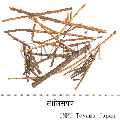 | Crude drug name | Ayurvedic name or Sanskrit name, English name | Talisapatram (T. wallichiana) | ||