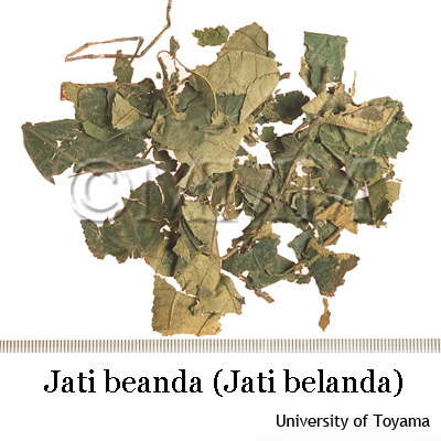 | Crude drug name | Indonesian name, English name | Jati belanda | ||||