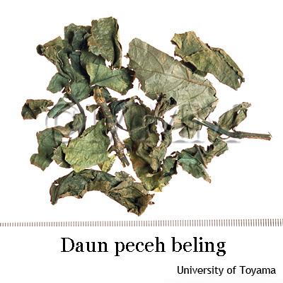 | Crude drug name | Indonesian name, English name | Daun keji beling | ||||