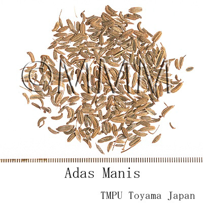 | Description | The fruit is an ovoid-cylindrical, slightly curved schizocarp, 3-8.5 mm x 2-2.5 mm, light green to yellow-brown, splitting at maturity into 2 mericarps where each has 5 prominent ridges and oil-vittae between the ridges. The plant is a perennial aromatic herb, up to 2 m tall. Leaves alternate, decompound, blade triangular in outline, 2-6 pinnately divided into filiform, acute, blue-green lobes. Inflorescence a terminal, compound umbel. [204]. | |||||