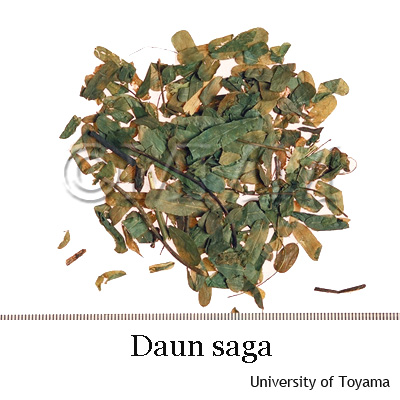 | Crude drug name | Indonesian name, English name | Daun saga, Indian Liquorice | ||||