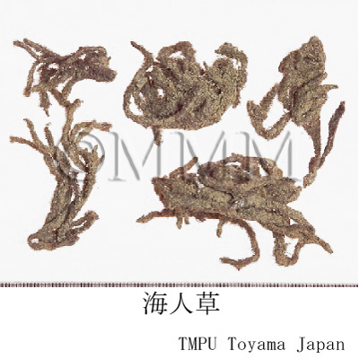 | Remarks | - In Japan, Shakosai was called Makuri in Edo period. However, Shakosai as we know it today is not Makuri. Shakosai is the whole body of Caloglossa leprieurii (Mont.) J. Agardh of family Delesseriaceae. It has the same vermicidal effect as Makuri. - Makuri is blended into the vermicidal Kampo formulations such as Shakoyasai-to and Seikiankai-to. - The kainic acid content in 10g of the crude drug is from 16mg (produced in Taiwan) to 18mg (produced in Okinawa). The alpha-all-okainic acid content is 1/100~1/500 of alpha-kainic acid, so it is not a very strong prasiticide. - Recently, an algae which was called Domoi in Tokunoshima district, Kagoshima Prefecture has gained attention, because it has been said to have a stronger vermicidal effect than Makuri since ancient times. Thus, a vermicidal component, domoic acid was discovered from it. Domoi is Chondria armata (Kutzing) Okamura of family Rhodomelaceae (Jap. name: Hanayanagi), which is found in a wide range of habitat such as along the Sea of Japan, Polynesia, East Indies and Indian Ocean. - Some part of Kainic acid and domoic acid have the same structure as glutamic acid and so they have been noticed by neulopharmacology. | |||||