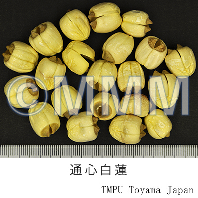 | Remarks | Nelumbinis Fructus (Jap. name: Sekirenshi) is the mature fruit of Nelumbo nucifera Gaertner (Jap. name: Hasu). It is applied to treat the complete loss of appetite due to diarrhea, vomiting, etc. Generally, the seed is used after removing the hard pericarp and the core. It is called Lianrou (Jap. name: Ren'niku). | |||||