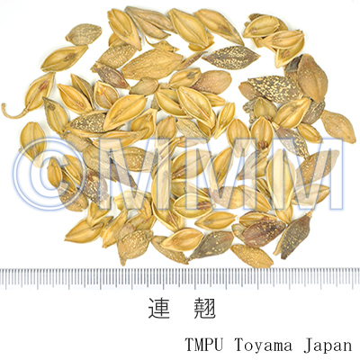| Remarks | The fruit of Forsythia suspensa or F. viridissima was defined in the Japanese Pharmacopoeia 16th edi. Only the former has been defiend since its 17th edi. The Chinese Pharmacopoeia also defines F. suspensa only. Korean Linqiao (Chosenrengyō in Jap.) is the fruit of F. koreana Nakai. It is a substitute for the real one and is inferior in quality . "Shōrengyō" (小連翹) is Hypericum erectum Thunb. (Otogirisō in Jap.) of family Hypericaceae and other species of the same genus. | |||||