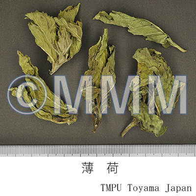 Remarks- Mentha piperita L. (Jap. name: Seiyōhakka) is a natural hybrid between Mentha spicata L. (Jap. name: Midorihakka) and Mentha aquatica L. (Watermint). It is cultivated for gardening and commercial use all over the world. It is a major European crude drug and called Menthae Piperitae Folium (Jap. name: Seiyohakkayō) or Peppermint. Being antispasmodic, carminative and cholagogue, it is used to treat gastrointestinal colic pain, flatulence and chronic gallbladder disease. The essential oil (peppermint oil: 0.5-4%) contains less menthol than that of Chinese Mentha Herb, "Bohe" (Jap. name: Hakka), but has a stronger odor and taste. Peppermint leaf contains menthofuran, however, "Bohe" contains only traces of it. These two can be distinguished by this component.