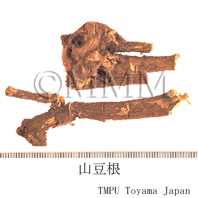 | Remarks | "Shandougen" has several kinds of origin. For the present, the "Shandougen", imported from China, belongs to genus Sophora. It is produced in Guangxi Zhuang Autonomous Region. "Shandougen" of Northeast and North China called "Beidougen", is the rhizome of Menispermum dauricum DC. of family Menispermaceae (Jap. Name: "Komorikazura"). In Hubei, Henan, Shanxi, Gansu, Shanxi, Jiangsu and others, "Shandougen" is the root of many kinds of genus Indigofera, family Leguminosae, such as Indigofera amblyantha Craib, I. fortunei Craib and I. ichangensis Craib. | |||||