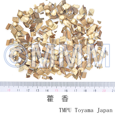 RemarksHouxiang (Jap. name: Kakkō or Kōkakkō) is a medicine of Indian origin. The plant name Pachouli is from Hindi. It was carried to Guangzhou by Chinese abroad more than 100 years ago and cultivated there. Since it is produced mainly in Guangdong and Hainan, it is called Kōkakkō in Japan (Japanese pronunciation of Guang'広' is Kō.). The one produced in Sichuan Prov. is the whole plant of Agastache rugosa (Fisch. et Mey.) O. Kuntze of family Labiatae (Jap. name: Kawamidori). It is called Dokakkō or Senkakkō.