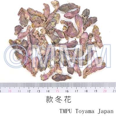 | Remarks | The leaves of Tussilago farfara L. ( Jap. name: Fukitampopo), which directly grow from the root are called Kuandongye, and the root of it is called Kuandonggen. They are used as antitussive and expectorant, as well as Kuandonghua. Fukitampopo is well distributed in the continent of Eurasia. The leaves are called Farfarae Folium in Europe and are applied to relieve coughs such as bronchial catarrh. Long ago, Dioscorides said "If you put the beaten leaves on rubors on the skin, erysipelas and all the other inflammatory regions, they will be cured. It will cure the people who are orthopneic because of dry cough or other transient reasons, if they fumigate dried leaves and inhale the smoke through a pipe. The smoke also induces expectoration of abscess in the lung. The fumigated smoke of the roots has the same benefits. If a pregnant woman drinks the brewed roots with honey water, she will abort a dead fetus." Since then, these benefits have been handed down. Wakantōka, Japanese Kuandonghua, is the flos of Petasites japonicus (Sieb. et. Zucc.) Maxim., butterbur of family Compositae. Generally, it is sold as Fukinotō and is also used to alleviate cough and remove phlegm. | |||||