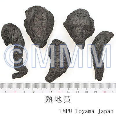 | Remarks | "Shudihuang" is processed with wine: it is made by steaming after mixing with "Huangjiu", a kind of rice wine such as "Shaoxingjiu". Then it is dried by daylight. This process, steaming and drying, is repeated 9 times. Steamed "Shudihuang": it is made by steaming without "Huangjiu". The steaming and drying process is repeated 9 times too. Comparing with "Kanjiō" (Unprepared Rehmannia Root), "Shudihuang" tends to have less or no iridoid glycoside such as catalpol, and has more monosaccharides. | ||||||