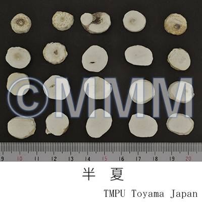 Remarks"Banxia (半夏)" is sometimes used after being processed. Processed "Banxia" consists of "Fabanxia (法半夏)" and "Jiangbanxia (姜半夏)". "Fabanxia (法半夏)" is processed with "Gancao (glycyrrhiza/liquorice)" and burnt lime. It is often used for eliminating dampness and resolving phlegm. "Jiangbanxia (姜半夏)" is processed with "Shengjiang (fresh ginger)" and alum. It is often used for lowering the adverse flow of qi to stop vomiting. In rare cases, the tuber of Pinellia pedatisecta Schott, P. tripartita Schott (Jap. name: Ōhange) or Arisaema spp. are blended into Chinese Banxia in the market. "Shuy-banxia (水半夏)" is the tuber of Typhonium sp.