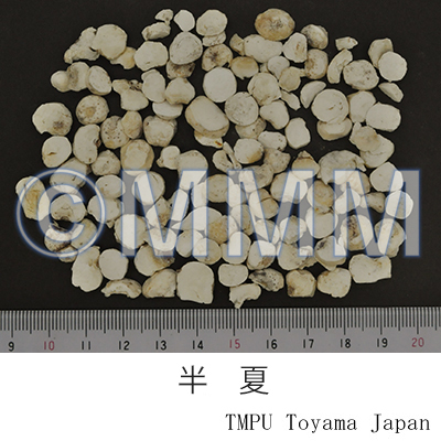 Remarks"Banxia (半夏)" is sometimes used after being processed. Processed "Banxia" consists of "Fabanxia (法半夏)" and "Jiangbanxia (姜半夏)". "Fabanxia (法半夏)" is processed with "Gancao (glycyrrhiza/liquorice)" and burnt lime. It is often used for eliminating dampness and resolving phlegm. "Jiangbanxia (姜半夏)" is processed with "Shengjiang (fresh ginger)" and alum. It is often used for lowering the adverse flow of qi to stop vomiting. In rare cases, the tuber of Pinellia pedatisecta Schott, P. tripartita Schott (Jap. name: Ōhange) or Arisaema spp. are blended into Chinese Banxia in the market. "Shuy-banxia (水半夏)" is the tuber of Typhonium sp.