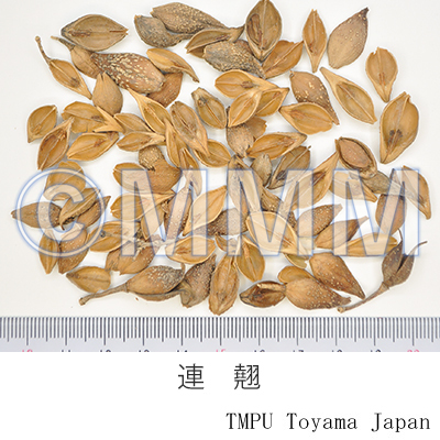 | Remarks | The fruit of Forsythia suspensa or F. viridissima was defined in the Japanese Pharmacopoeia 16th edi. Only the former has been defiend since its 17th edi. The Chinese Pharmacopoeia also defines F. suspensa only. Korean Linqiao (Chosenrengyō in Jap.) is the fruit of F. koreana Nakai. It is a substitute for the real one and is inferior in quality . "Shōrengyō" (小連翹) is Hypericum erectum Thunb. (Otogirisō in Jap.) of family Hypericaceae and other species of the same genus. | |||||