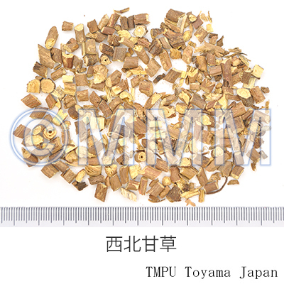 | Remarks | - "Xinjiang Gancao", the root or stolon of Glycyrrhiza inflata Batal, is used for extracting and isolating glycyrrhizin. - Raw or honey dipped fragments of "Gancao" are roasted, which are called "Zhigancao". "Gancao" clears away heat and toxins well, whereas "Zhigancao" is strong in invigorating the spleen and replenishing qi (vital energy). - "Gancao" is the most frequently used crude drug in Kampo formulations. "Gancao" extract is in high demand as a condiment for cigarette, soy sauce and other foods. - Because of the action of its mineralcorticoids, long-term and massive use (over 50g/day) may lead to hypokalemia, hypernatremia, edema, high blood pressure and heart disorders. In extreme cases, it causes pseudoaldosteronism. | ||||||