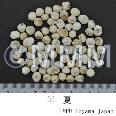 | Remarks | "Banxia (半夏)" is sometimes used after being processed. Processed "Banxia" consists of "Fabanxia (法半夏)" and "Jiangbanxia (姜半夏)". "Fabanxia (法半夏)" is processed with "Gancao (glycyrrhiza/liquorice)" and burnt lime. It is often used for eliminating dampness and resolving phlegm. "Jiangbanxia (姜半夏)" is processed with "Shengjiang (fresh ginger)" and alum. It is often used for lowering the adverse flow of qi to stop vomiting. In rare cases, the tuber of Pinellia pedatisecta Schott, P. tripartita Schott (Jap. name: Ōhange) or Arisaema spp. are blended into Chinese Banxia in the market. "Shuy-banxia (水半夏)" is the tuber of Typhonium sp. | |||||