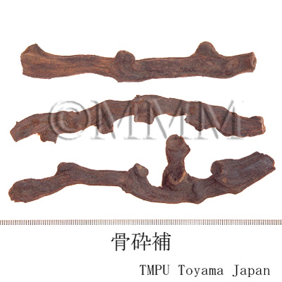 | Remarks | Mostly, Gusuibu (骨砕補) is referred as to the dried rhizome of Drynaria fortunei (Kunze) J. Smith of family Polypodiaceae (Jap. name: Hakamauraboshi) which is called "Bayanjiang", "Diaolan", "Wuyanjiang", "Bamaofeng" and "Shijini" in Sichuan, "Payajiang" in Henan and Guizhou, and "Baryukyō" (Jap. name) in Guangxi. The rhizomes of the following species are also used.: D. sinica Diels which is called "Houjiang" in Sichuan and "Maonijiang" or "Luotuo" in Gansu. D. propinqua (Wall.) J. Smith var. mesosoria Christ which is called "Payanjiang", "Shiyanjiang," or "Gusuibu" in Sichuan.Pseudodrynaria coronans (Wall.) Ching which is called "Gusuibu" in Guangxi. In China, the rhizome without scale is called "Gusuibu", while the one with scale is called "Shenjiang" or "Houjiang". Fang Ding, Guangxi Institute of Traditional Medical and Pharmaceutical Science, researched original plants of "Gusuibu" in Guangxi and reported the following species in 1962.: Phymatodes lucida (Roxb.) Ching of family Polypodiaceae ("Houzijiang" or "Gusuibu" in Jingxi of Guangxi), Davallia mariesii Moor. (Jap. name: Shinobu), D. austro-sinica Ching, D. formosana Hayata, and Drynaria bonii Christ, Polypodium amoenum Wall., Colysis elliptica (Thunb.) Ching var. pothifolia (Don) Ching (Jap. name: Arisandenda), Leucostegia immersa (Wall.) Presl. ("Gusuibu" in Jingxi of Guangxi, Jap. neme: Arisan'ōrenshida), Davallia bullata Wall. ("Gusuibu" or "Suibu" in Luchuan of Guangxi), Leucostegia perdurans C. Christ ("Gusuibu" in Kunming of Yunnan). | |||||