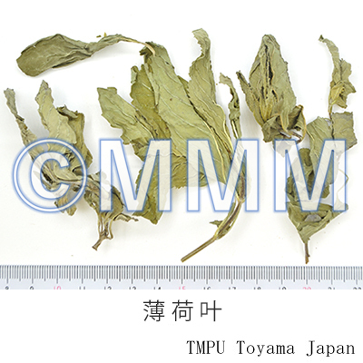 Remarks- Mentha piperita L. (Jap. name: Seiyōhakka) is a natural hybrid between Mentha spicata L. (Jap. name: Midorihakka) and Mentha aquatica L. (Watermint). It is cultivated for gardening and commercial use all over the world. It is a major European crude drug and called Menthae Piperitae Folium (Jap. name: Seiyohakkayō) or Peppermint. Being antispasmodic, carminative and cholagogue, it is used to treat gastrointestinal colic pain, flatulence and chronic gallbladder disease. The essential oil (peppermint oil: 0.5-4%) contains less menthol than that of Chinese Mentha Herb, "Bohe" (Jap. name: Hakka), but has a stronger odor and taste. Peppermint leaf contains menthofuran, however, "Bohe" contains only traces of it. These two can be distinguished by this component.