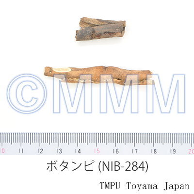 RemarksThere are many varieties of peony. The origin of Mudanpi is complicated and the composition of the chemical component varies slightly according to the species. The Mudanpi without core, which is produced in Nara Prefecture, is good quality. The best product in China is produced at Tonglingfenghuangshan in Anhui Prov. which is called "Fenghuangmudanpi" or "Fengdanpi". The Japanese Pharmacopoeia defines Mudanpi as the one which contains not less than 1.0%(JP17) but 0.9%(JP18) of Paeonol.